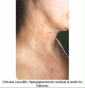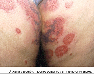 Las lesiones vasculares cutáneas se reconocen generalmente como una púrpura palpable, siendo por el contrario la presencia de urticaria y/o angioedema una manifestación incomún. No obstante, la urticaria como una manifestación de la venulitis necrotizante puede aparecer en la enfermedad del suero, ciertas enfermedades vasculares del colágeno (LES , síndrome de Sjögren), algunas urticarias físicas (urticaria por frío adquirida idiopática, urticaria por presión), algunas infecciones (hepatitis B, mononucleosis infecciosa) o bien puede aparecer como un síndrome idiopático siendo en este último caso denominado urticaria vasculitis.