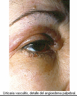 La urticaria vasculitis es un síndrome poco frecuente que afecta a la piel y mucosas y que puede tener también manifestación extracutáneas, afectando a la sinovial (artralgias), riñones (glomerulonefritis), aparato respiratorio (desarrollándose una EPOC , especialmente en fumadores, siendo la más frecuente causa de muerte en los pacientes con urticaria vasculitis). También pueden presentar asfixia fatal por edema laríngeo, trastornos gastrointestinales (dolor abdominal, vómitos), oculares (epiescleritis, uveítis), del SNC y cardio vasculares.