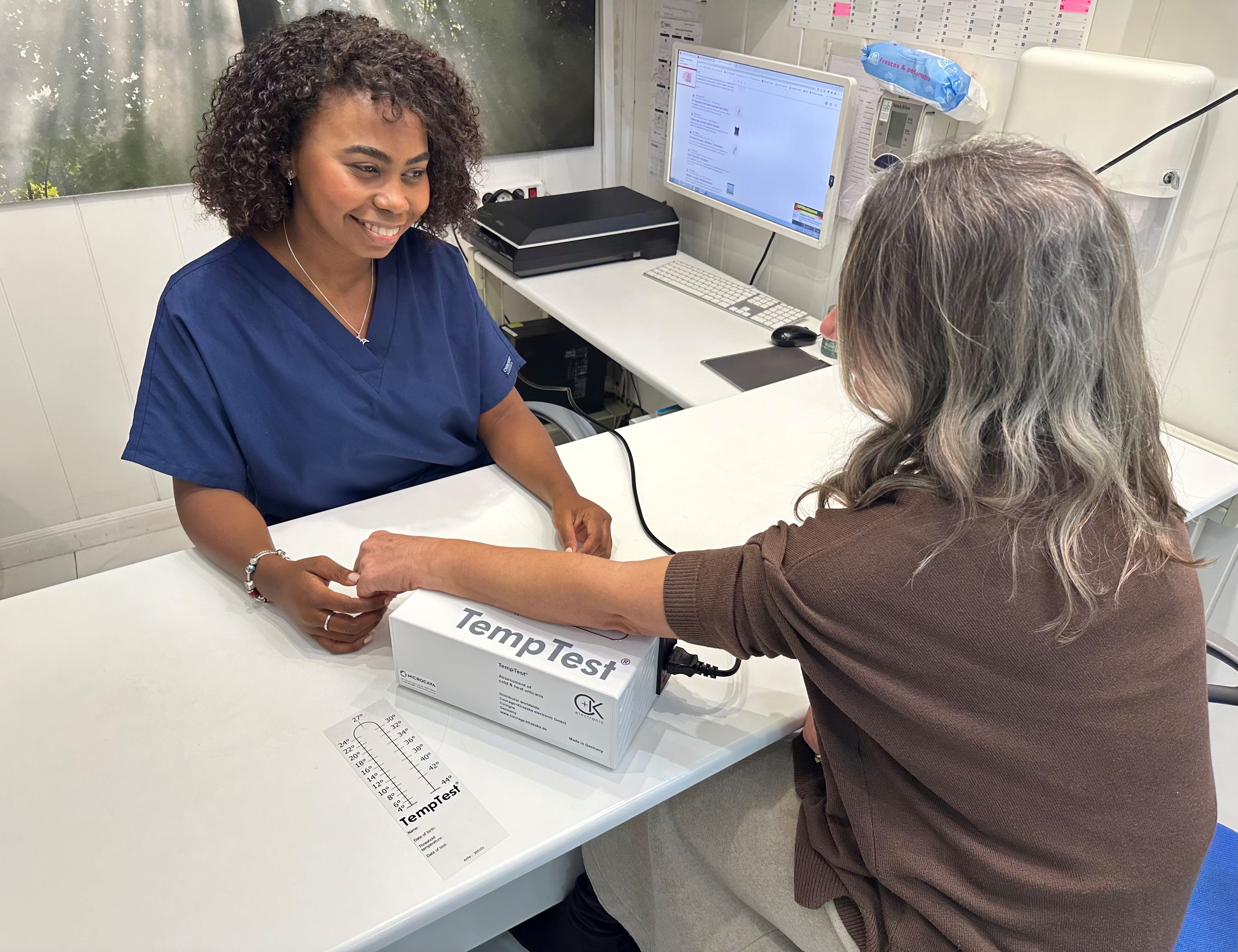 • En la mayoría de los pacientes el diagnóstico puede ser hecho mediante la aplicación de un cubito de hielo (envuelto en plástico), en la piel del antebrazo durante 5 minutos (se aplica cuando empieza a