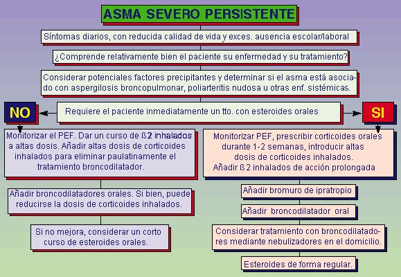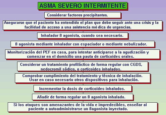 Si no se logra un control adecuado, debe ensayarse un broncodilatador adicional. Es importante que el beneficio objetivo de este tratamiento adicional sea registrado con un peak flow en casa y continuarlo sólo si el beneficio ha sido comprobado.