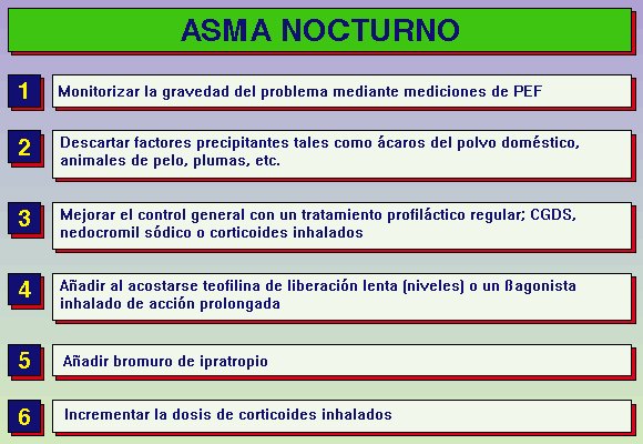 ► ß-2 agonistas orales: A veces la adición de un ß-2 agonista oral de liberación lenta puede ser útil particularmente en pacientes con síntomas nocturnos persistentes.